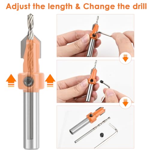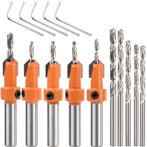• MULTI-SIZE COUNTERSINK DRILL BIT SET: 15pcs Counter sink drill bit set includes 5pcs commonly used countersink bits for wood (2.8mm, 3.0mm, 3.2mm, 3.5mm, 4.0mm), equipped with 5 pilot drill bits and 5 wrenches to meet various woodworking and DIY drilling needs.