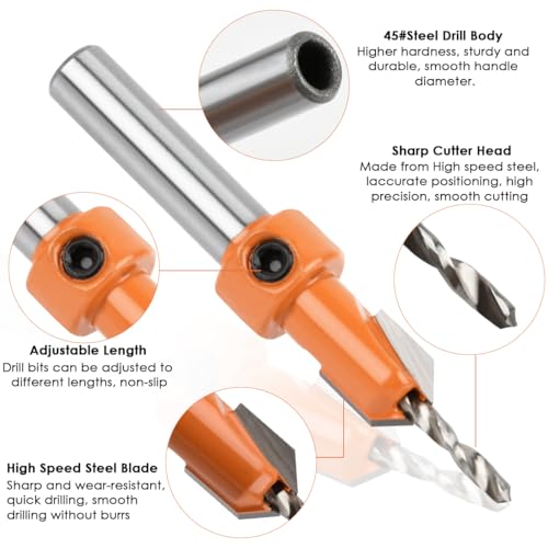 • PREMIUM DURABLE ALLOY & CARBON STEEL MATERIAL: Drill countersink bit set is made of alloy and #45 carbon steel with a plastic-sprayed surface, ensuring the bits are sharp, wear-resistant, rustproof, and corrosion-resistant for extended service life.