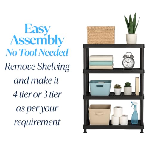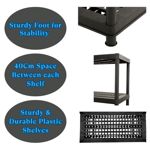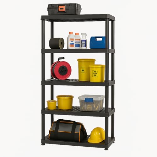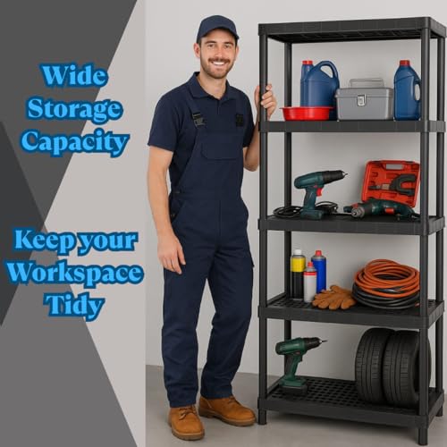 - Heavy Duty Construction: This Plastic Shelving is made from high-quality tough plastic which is designed to support heavy loads, perfect for garages, sheds, and workshops