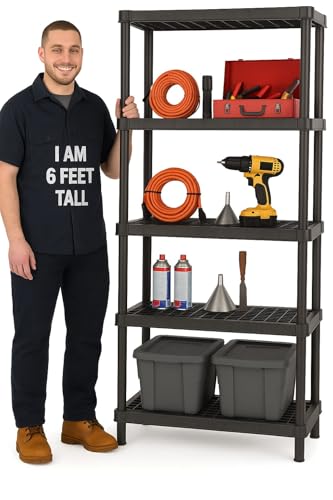 - Space-Saving Design: These Plastic shelving for garages and sheds are Ideal for maximizing storage space in tight areas like garages, basements, utility rooms, or warehouses and keep your space tidy