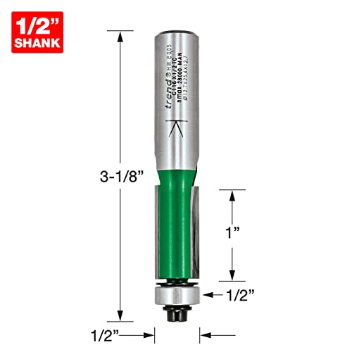 Trend CraftPro Self-Guided Trimmer Router Cutter Bit, 1/2 Inch Shank, 12.7mm Cut Diameter & 25.4mm Cut Length, Tungsten Carbide Tipped, C116X1/2TC