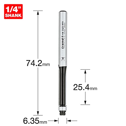 - GUIDED TRIMMER: Trend's Trade Guided Trimmer has a 1/4" shank, 6.3mm Cutting Diameter, and a 25.4mm Cutting Length. It's excellent for making decorative laminates and veneers flush to an edge or for templating work.