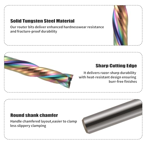 - Excellent Performance—Trvoxviq Up down cut CNC spiral router bits design effectively reduces cutting resistance, convenient for chip removal, making the workpiece smoother and brighter, further improving machining efficiency.
