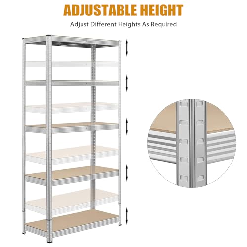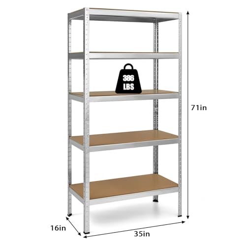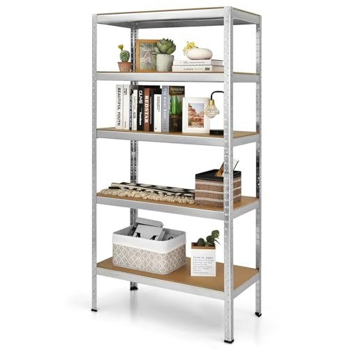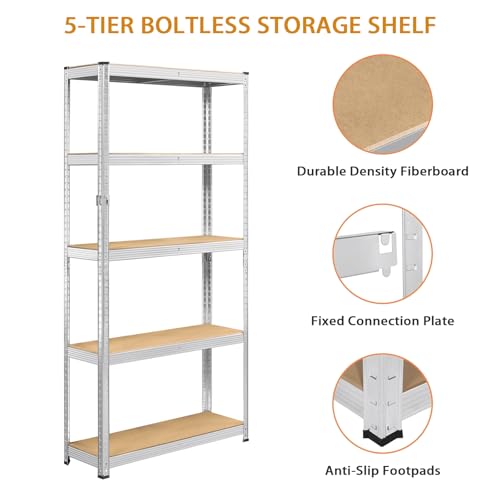 ULIKEUS 5-Tier Utility Storage Shelves Heavy Duty Adjustable Garage Organiser Metal Shelving Racking Units Boltless Rack Shelf For Storage Warehouse Pantry Workshop-Silver 36" L x 16" W x 72" H