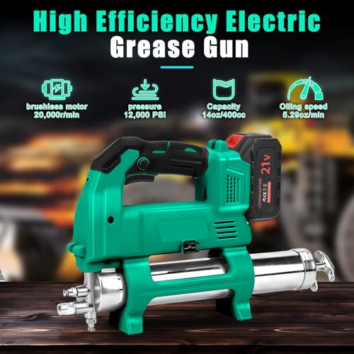 - 【Efficient Electric Grease Gun】: Powered by a powerful and efficient brushless motor, the powerful power can provide up to 12,000 PSI pressure and 5.3 oz/min flow rate, eliminating the physical burden of manual oiling. Save up to 90% of time and energy through easy trigger operation.