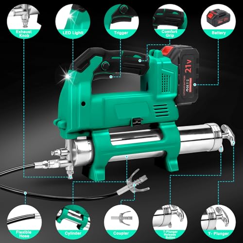 - 【Easy Lubrication】: Equipped with a 39.4-inch flexible hose, 3 upgraded quick connectors and 1 extension tube, it has excellent versatility, convenient access to hard-to-reach accessories, and improves oiling efficiency by 50%. The built-in LED light ensures that oiling tasks can be completed even in low light conditions, ensuring accurate oiling of heavy machinery such as cars, trailers, excavators, tractors, etc.