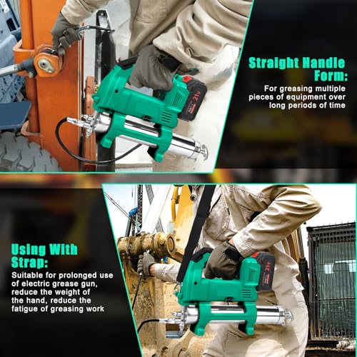 - 【Save Time and Effort】: Use this electric grease gun to easily complete a large number of lubrication tasks, eliminate laborious manual pumping, significantly reduce muscle fatigue, shorten working time by 75%, and increase work efficiency by 50%. The shoulder strap improves comfort during long-term use, reduces strain and improves work efficiency.