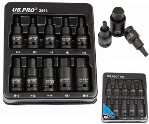 US PRO Tools 10pc Impact Hex Bit Socket Set 1/2'' Drive 4mm to 19mm 3593