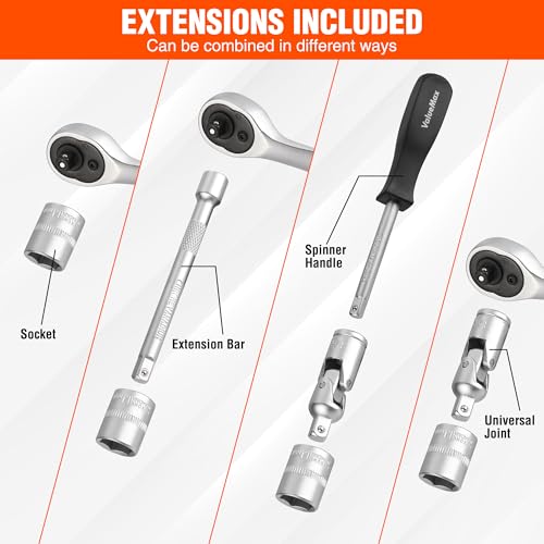 - Multipurpose and perfect for your work:The universal joint and flexible extension bar can be used in various tight spaces. This tool set can meet your repair or mechanical work needs. It is ideal as a gift for machine repair enthusiasts.