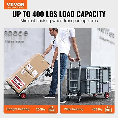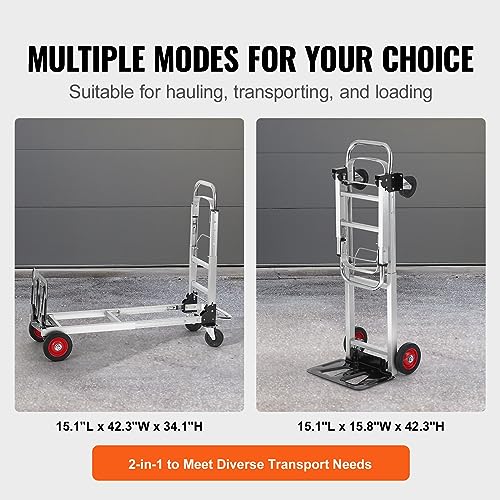 VEVOR 2-in-1 Folding Sack Truck, 113/181 kg Load Capacity, Transport Trolley, Aluminium Alloy & Carbon Steel Sack Truck, Platform Trolley for Loading & Transport Tasks Indoors and Outdoors