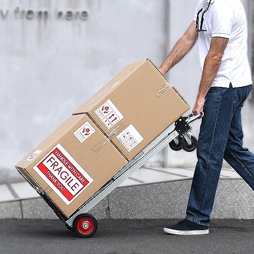 • 2-in-1 flexibility: upright or flat – how do you roll? This ergonomic, convertible sack truck transforms into two different trolleys in seconds. Need more ways to wear? Our non-slip handle makes it possible! Choose the mode that best suits your needs when transporting goods.