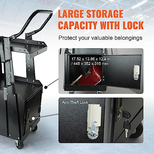 VEVOR Welding Cart, 2-Tier Heavy Duty Welder Cart with Anti-Theft Lockable Cabinet, 265LBS Weight Capacity, 360° Swivel Wheels, Tank Storage Safety Chains, Welding Cabinet for TIG, ARC, Plasma Cutter