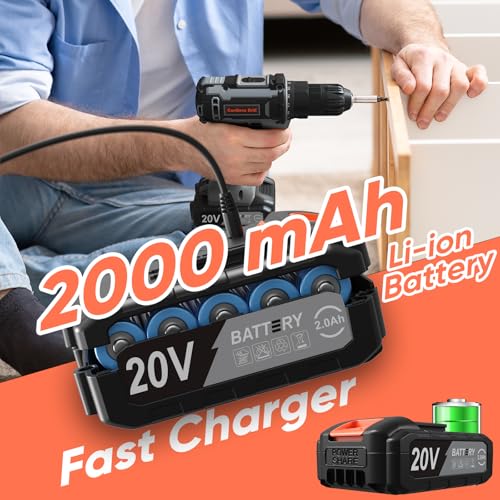 • Long-Lasting 2000mAh Battery: Our battery drill equipped with a 20V lithium-ion 2000mAh battery and fast charger. Fully charges in around 1 hour, keeping your projects running without long waiting times.