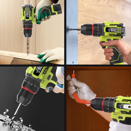 • 【50N.m Max Torque & 3-in-1 Hammer Drill】Cordless drill With a maximum torque of 50N.m, Hammer drill can easily meet various needs for drilling and screwdriving on wood, metal and plastic.At the same time this combination electric drill driver has three working modes: screwing, drilling and hammer drilling. It can greatly improve your work efficiency.It is perfect for both first-time DIY and experienced craftsmen.
