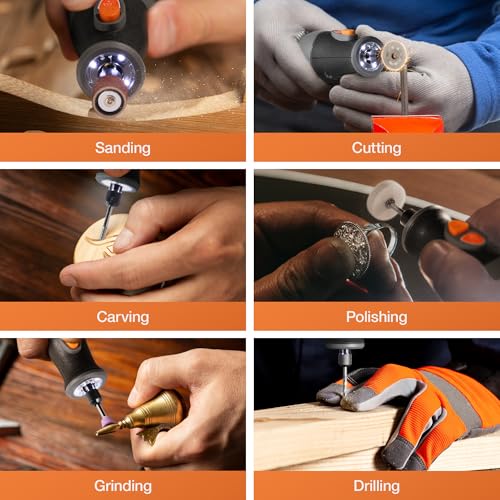 - CORDLESS & ERGONOMIC: Powerful yet lightweight, the 8V 2.4Ah battery runs for max 90 minutes (no load). Charge the cordless rotary tool up in three hours using the convenient USB-C charging cable.