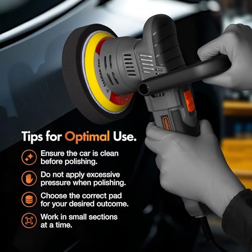 • VARIABLE SPEEDS: With a powerful 2800-6000RPM range, this car buffer is up for any task. Rotate the thumb dial to adjust the speed for buffing, polishing, paint removal and more.