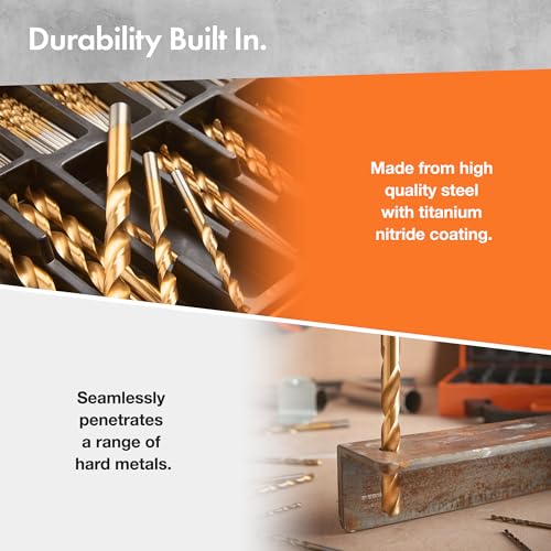 - PREMIUM QUALITY: Featuring a high quality titanium nitride coating, each metal drill bit seamlessly penetrates a range of hard materials with a clean and fast low-friction drilling action.