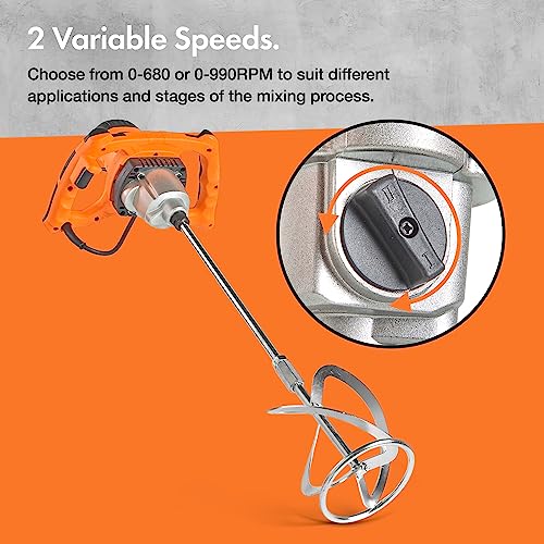 - TWO-STAGE START: Featuring a variable paddle rotation speed function to cater for a wide range of mixing needs and processes, choose from the 2 gear motor’s speeds (0-680 or 0-990 RPM) and get mixing!