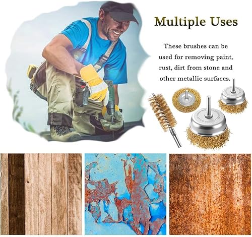 - Wire Brushes Material:Metallic Wire Brush Drill Bit Set is made from high quality brass plated steel wires for effective surface cleaning and preparation.