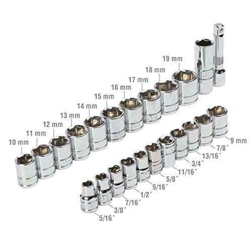 • ✅【Popular Socket Size】Metric: 9mm, 10mm, 11mm, 12mm, 13mm, 14mm, 15mm, 16mm, 17mm, 18mm, 19mm. SAE: 5/16", 3/8", 7/16", 1/2", 9/16", 5/8", 11/16", 3/4", 13/16", 7/8"