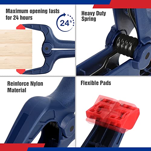 - Sturdy Spring Clamps: Flexible red pads could adjust according to the specific object to be clamped. Reinforced nylon material further increases product durability