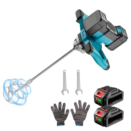 - 2PCS LARGE CAPACITY BATTERIES: Cordless mud mixer is equipped with 2pcs 20V 3000mAh high quality rechargeable batteries which have overheat/explosion-proof and temperature protection.Continuous use time of about 60 minutes,A full charge takes just 2 hours.Cordless design offers unmatched flexibility and mobility, freeing you from power sources and cords,you can move freely around the construction site, reaching tight spaces and remote areas.