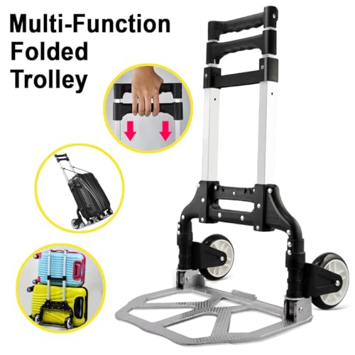 • Strong aluminium construction: This aluminium hand truck boasts outstanding durability and high load capacity which is up to 75kgs. The use of aluminium makes this piece light in weight yet high in strength.