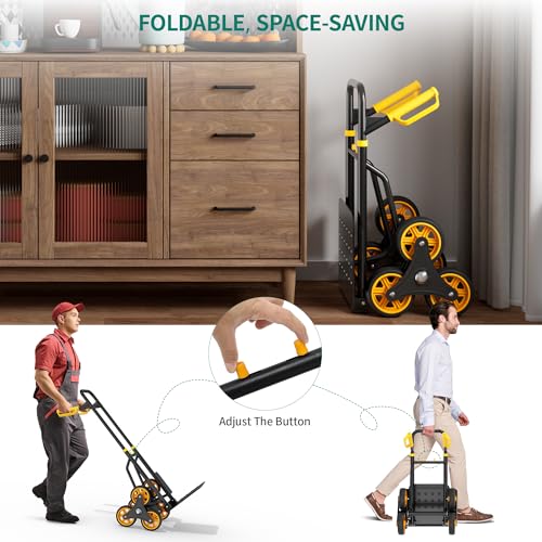 - Effortless Stair Climbing with 6 Wheels: This foldable trolley is designed with a unique 6-wheel system, allowing you to easily navigate stairs. It can carry up to 150kg on flat surfaces and 80kg when climbing stairs, making it versatile for various scenarios